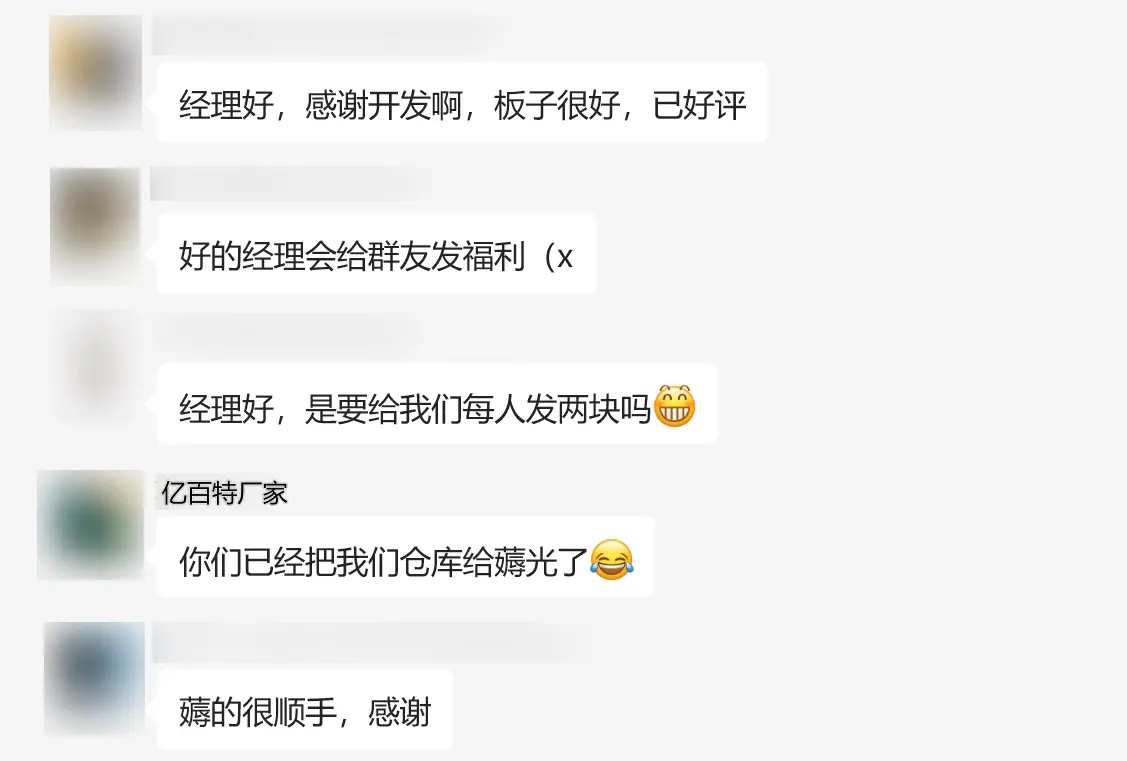 这个消息一出,群友们的购物热情瞬间爆表,不仅清空了厂家库存,还让厂家吓到进群求饶:「别买了别买了,仓库没货啦!😭」 更有趣的是,现在 Ebyte 厂家的人也进群围观,想搞清楚为什么这些板子突然就成了爆款。