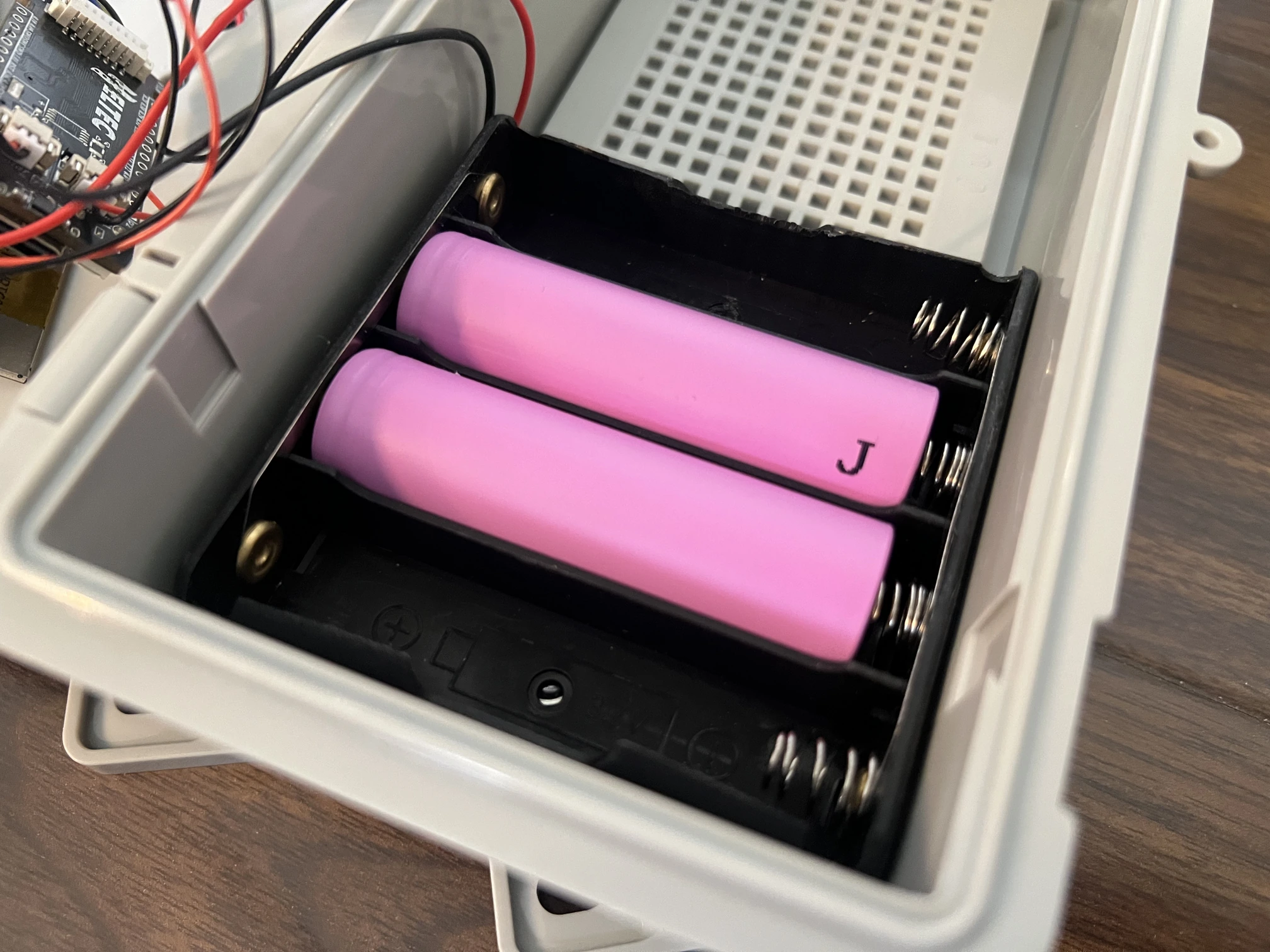 目前的电池配置是两颗并联的 18650 电池,这样的配置已经能够支持系统的运行,但如果考虑到长时间的阴雨天气或太阳能板充电不足的情况,增加电池容量将使系统更为稳定和可靠。