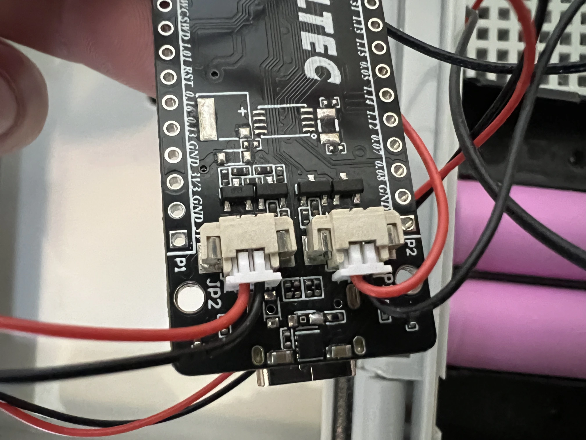 之所以选择并联连接,而非串联,是因为 Heltec T114 节点设计时预期使用的电池电压为 3.7V。如果我们使用串联配置,电池组的电压会被增加到 7.4V 或更高,这超出 T114 的电压输入范围,导致设备无法正常工作。