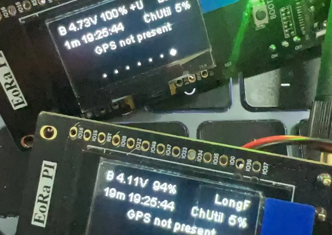 该命令将返回设备当前的时间,此时你应该看到正确的本地小时、分钟和秒。meshtastic --get time - 你也可以使用设备上的 USER 按钮(即 BOOT 按钮)来导航至显示当前时间的屏幕,该屏幕还会显示 电池电压、信道利用率及 GPS 信息。