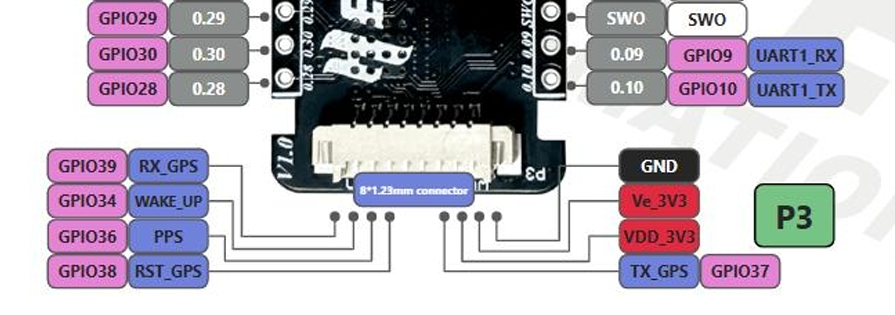 Heltec T114 的 GNSS 接线端子是其设计的重要部分,它的布局和接口方式决定了其与 GNSS 模块的兼容性。在设计上,T114 直接为移远 L76KB-A58 模块预留了标准的连接接口。通过这样的设计,移远 L76KB-A58 模块可以直接插入并使用(Plug and Play),无需额外调整接线或接口逻辑。